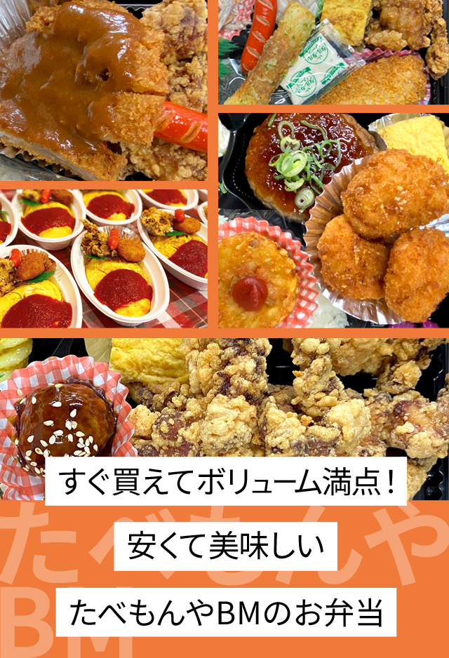 たべもんやBMでは、皆さまにたくさん召し上がっていただけるよう、唐揚げなどの定番から日替わりまで、豊富なメニューをご用意しています。リーズナブルな価格のお弁当では、ご飯の大盛も対応!お好みに合わせてお腹いっぱいお召し上がりください。